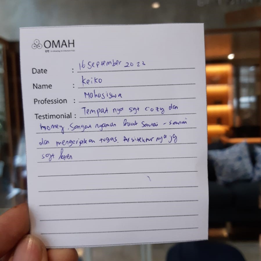 Tempatnya sangat cozy dan homey. Sangat nyaman buat santai-santai dan mengerjakan tugas. Arsitekturnya juga sangat keren.