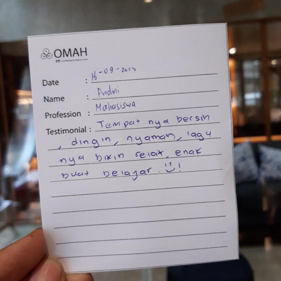 Tempat-nya nyaman bersih, dingin, nyaman, lagunya bikin relax, enak buat belajar 🙂
