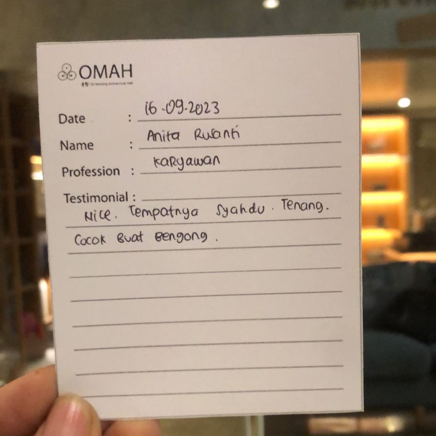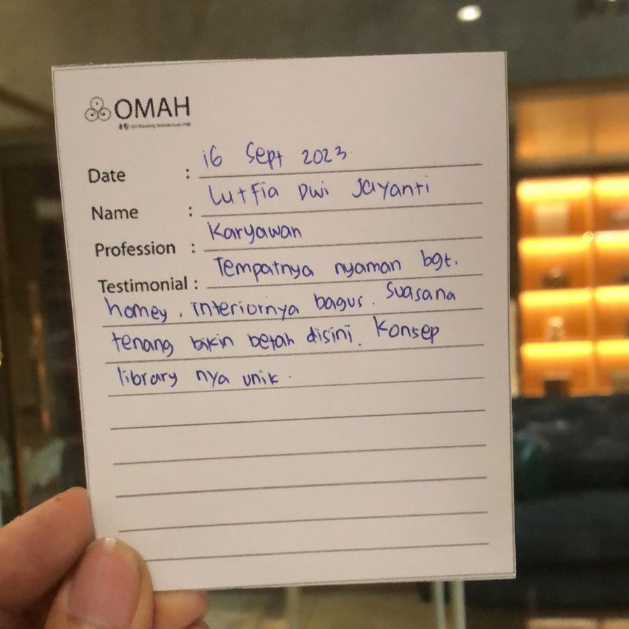 Tempat-nya nyaman banget, homey. Interior-nya bagus. Suasana tenang bikin betah disini. Konsep library-nya unik.