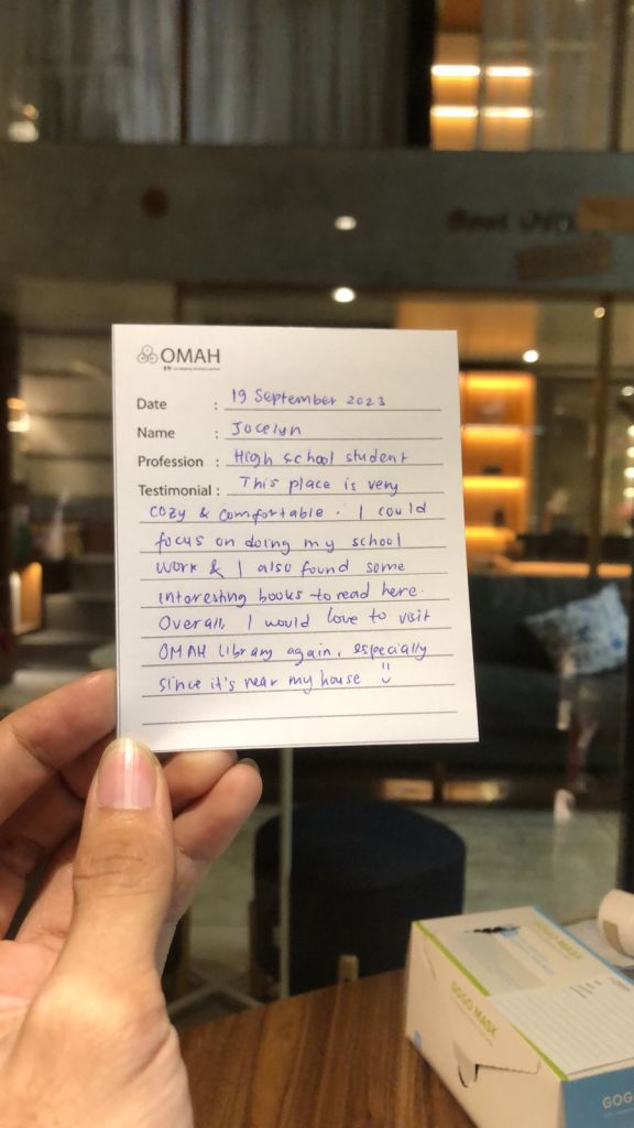 This place is very cozy & comfortable. I could focus on doing my school work & i also found some interesting books to read here. Overall i would love to visit Omah Library again, especially since it’s near my house 🙂