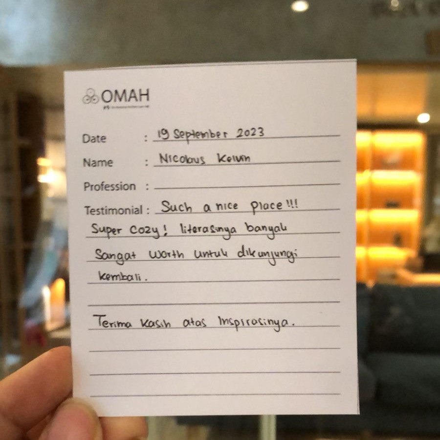 Such a nice place!!! Super cozy! Literasinya banyak. Sangat worth untuk dikunjungi kembali. Terimakasih atas inspirasi-nya.