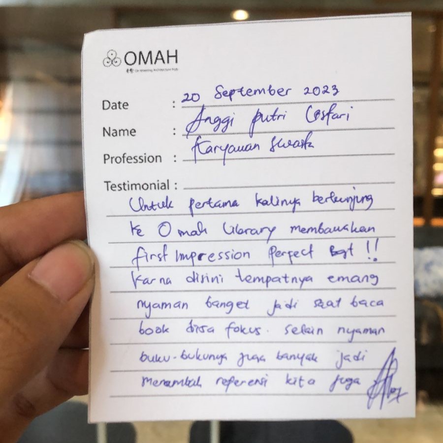Untuk pertama kalinya berkunjung ke Omah library membawakan first impression perfect banget!! karena disini tempatnya emang nyaman banget jadi saat baca book bisa fokus. Selain nyaman buku-bukunya juga banyak jadi menambah referensi kita juga.