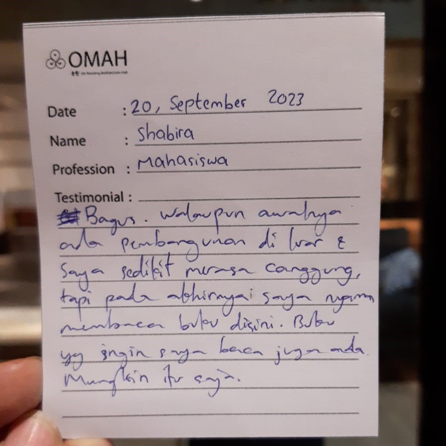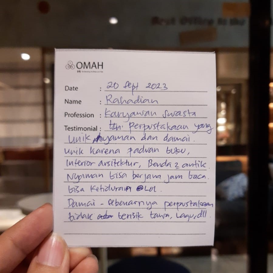 Saya suka membaca buku disini dan yang saya baca buku-bukunya menarik dan ruangannya ber-ac, saya suka Omah Library ini. Keren..perpustakaan ini nyaman damai dan tenang.