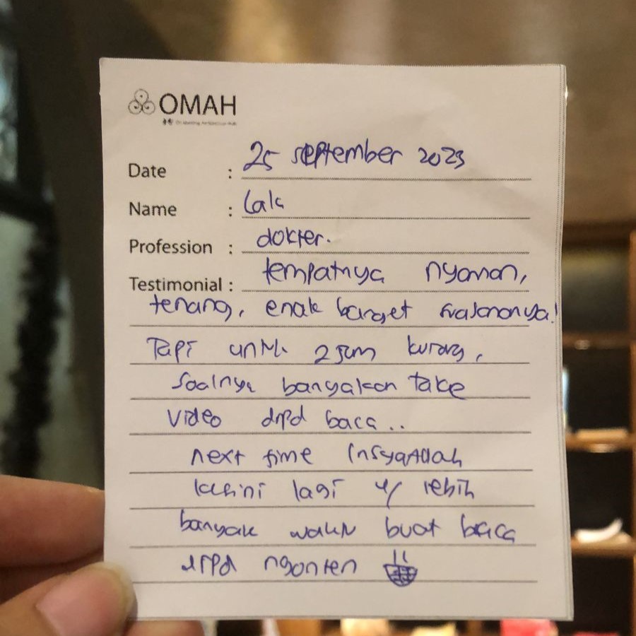 Tempat-nya nyaman, tenang, enak banget suasana0nya. Tapi untuk 2 jam kurang, soalnya banyakan take video daripada baca. Next time InsyaAllah kesini lagi untuk lebih banyak waktu buat baca daripada ngonten.