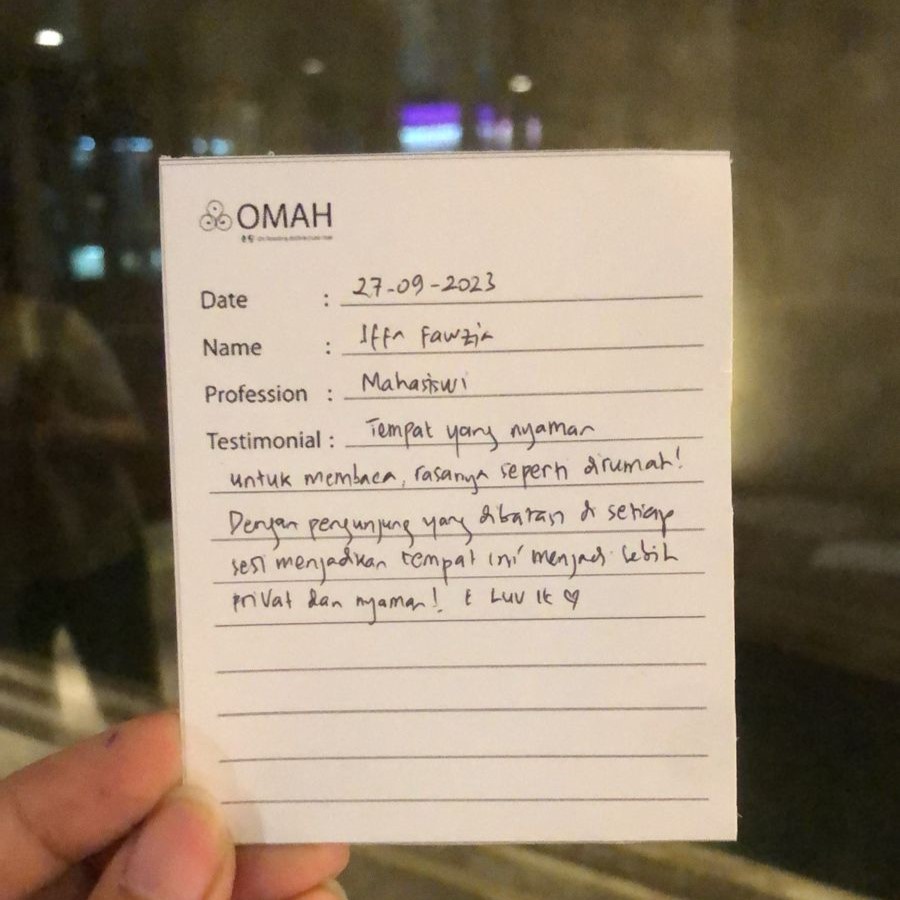 Tempat yang nyaman untuk membaca, rasanya seperti dirumah! Dengan pengunjung yang dibatasi di setiap sesi menjadikan tempat ini menjadi lebih privat dan nyaman! I love it. ❤