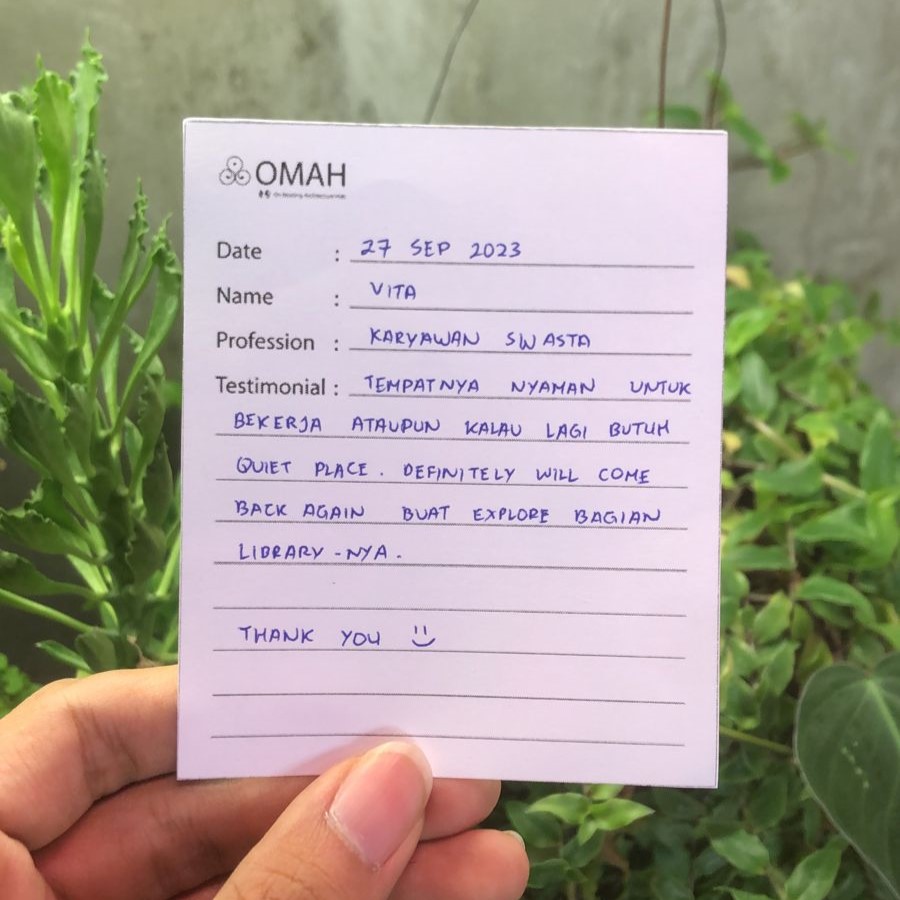 Tempat-nya nyaman untuk bekerja ataupun kalau lagi butuh quiet place. Definitely will come back again. Buat explore bagian library-nya. Thank you 🙂