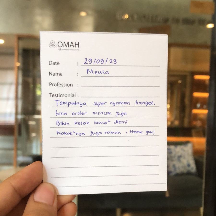 Omah library tempat yang cocok buat silent time, tempat-nya aesthetic, buku fiksi banyak yang seru, tempat luas dan tenang. Bakal jadi tempat langganan kalo lagi mau baca buku, nyantai. Thank you Omah Library.