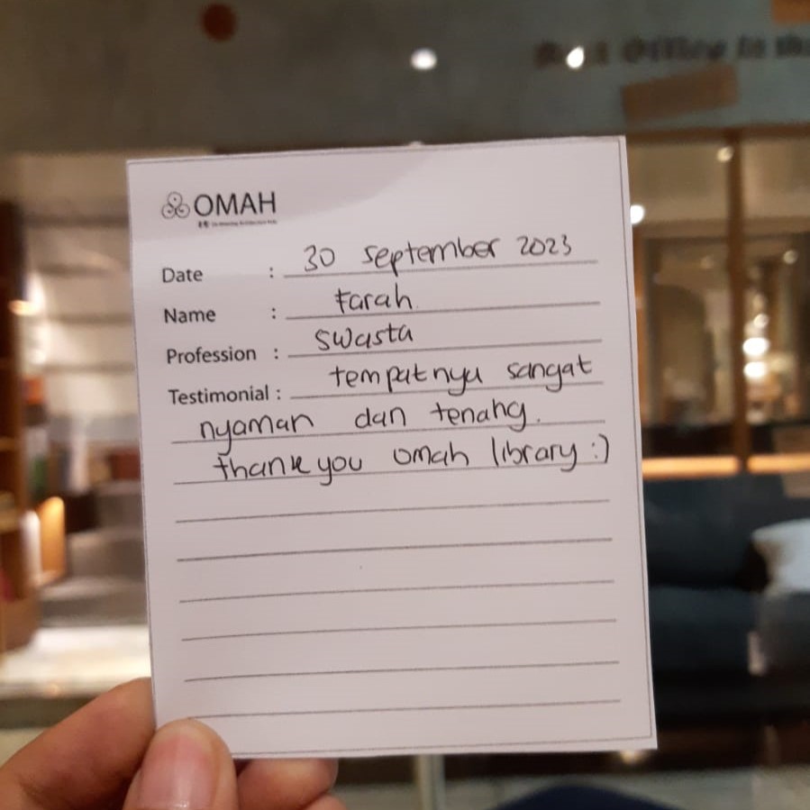 Tempat-nya sangat nyaman dan tenang. Thank you Omah Library 🙂