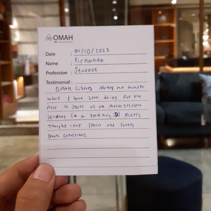 Suasana yang dibawakan Omah sangatlah menarik untuk dieksplor dan nyaman untuk membaca. Buku-buku yang cukup banyak & menarik untuk menjadi referensi tugas akhir.