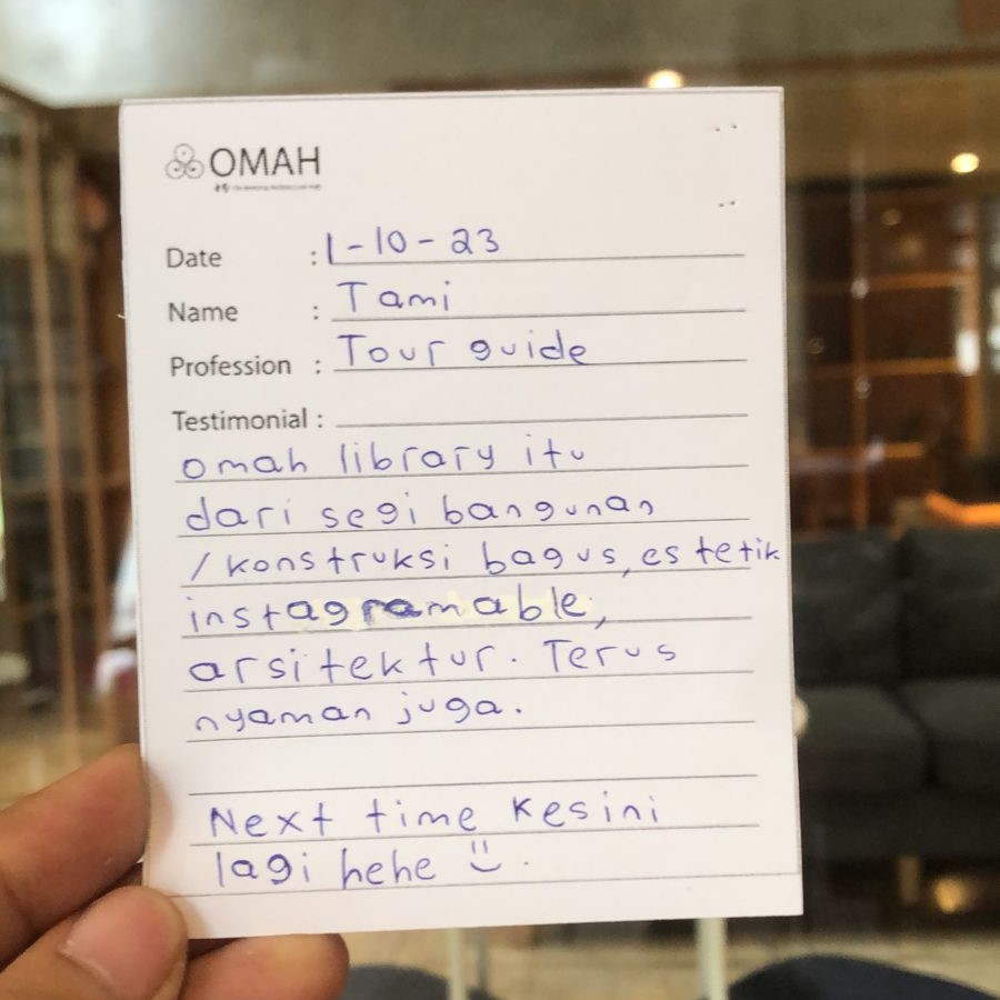 Omah Library itu dari segi bangunan/kosntruksi bagus, estetik, instagramable, arsitektur. Terus nyaman juga. Next time kesini lagi hehe:)