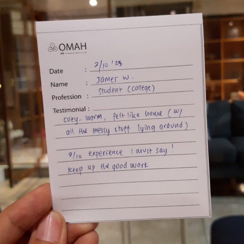 Cozy, warm, felt like home (with all the messy stuff lying around). 9/10 experience i must say! Keep up the good work.