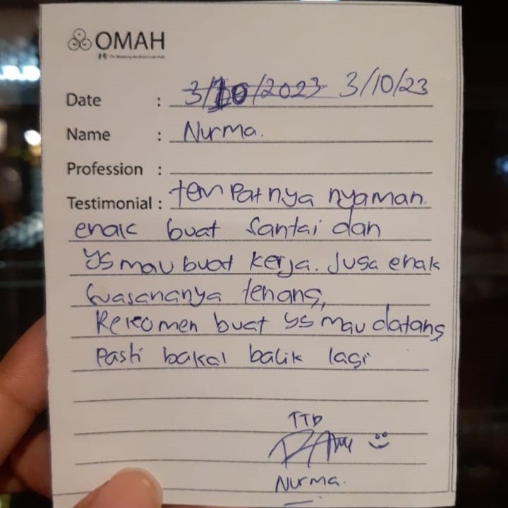 Tempat-nya nyaman, enak buat santai dan yang mau buat kerja. Juga enak suasana-nya tenang, rekomen buat yang mau datang. Pasti bakal balik lagi.