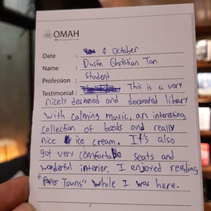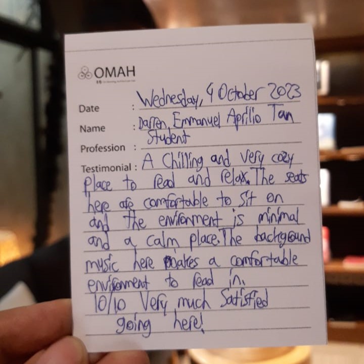 A chilling and very cozy place to read and relax. The seat here are comfortable too sit on and the environment is minimal and a calm place. The backsound music here makes a comfortable environment to read in. 10/10 very much satisfied going here!