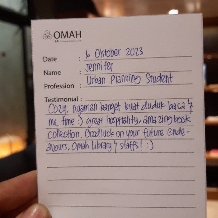 Cozy, nyaman banget buat duduk baca & me time:) great hospitality, amazing book collection. Good luck on your future endeavours Omah Library & staff!:)