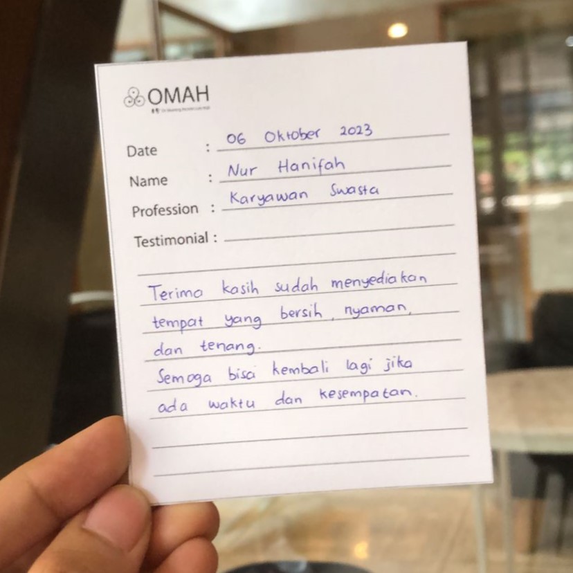 Terima kasih sudah menyediakan tempat yang bersih, nyaman, dan tenang. Semoga bisa kembali lagi jika ada waktu dan kesempatan.