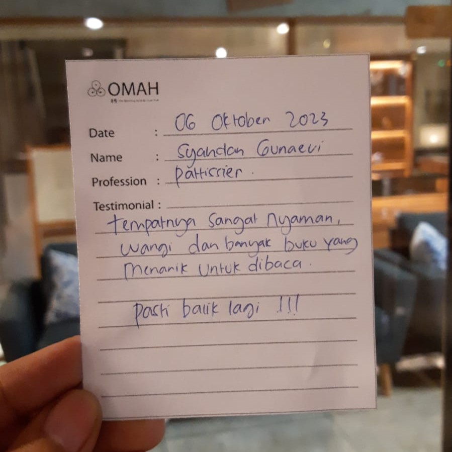 Tempatnya sangat nyaman, wangi dan banyak buku yang menarik untuk dibaca. Pasti balik lagi!!