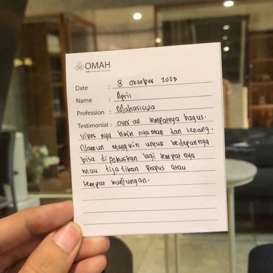 Overall tempatnya bagus. Vibes-nya bikin nyaman dan tenang. Namun mungkin untuk kedepannya bisa di fokuskan lagi tempatnya mau dijadikan perpus atau tempat kunjungan.