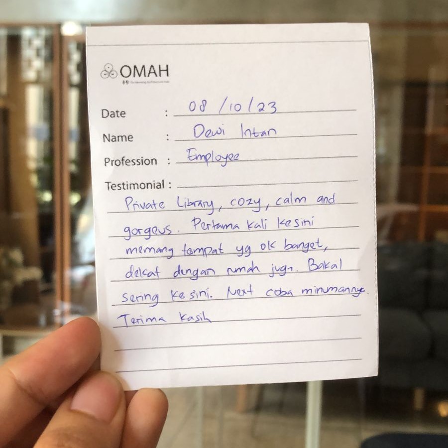 Private library, cozy calm and gorgeus. Pertama kali kesini memang tempat yang oke banget, dekat dengan rumah juga. Bakal sering kesini. Next coba minumannya. Terimakasih.