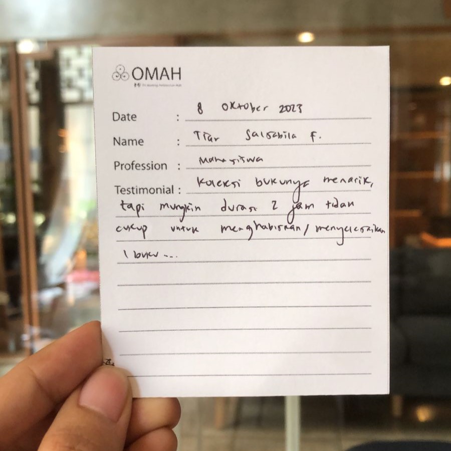 Koleksi bukunya menarik, tapi mungkin durasi 2 jam tidak cukup untuk menghabiskan/menyelesaikan 1 buku.
