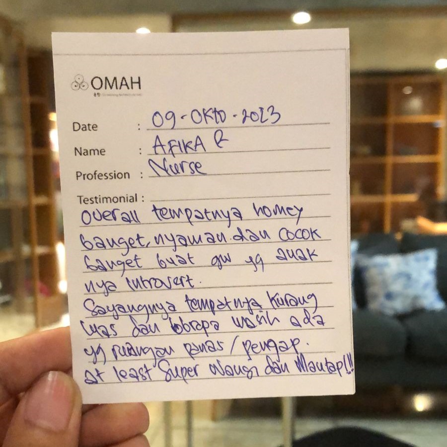 Overall tempatnya homey banget, nyaman dan cocok banget buat gw yang anaknya introvert. Sayangnya tempatnya kurang luas dan beberapa masih ada yang ruangan panas/pengap. At least super wangi dan mantap!!