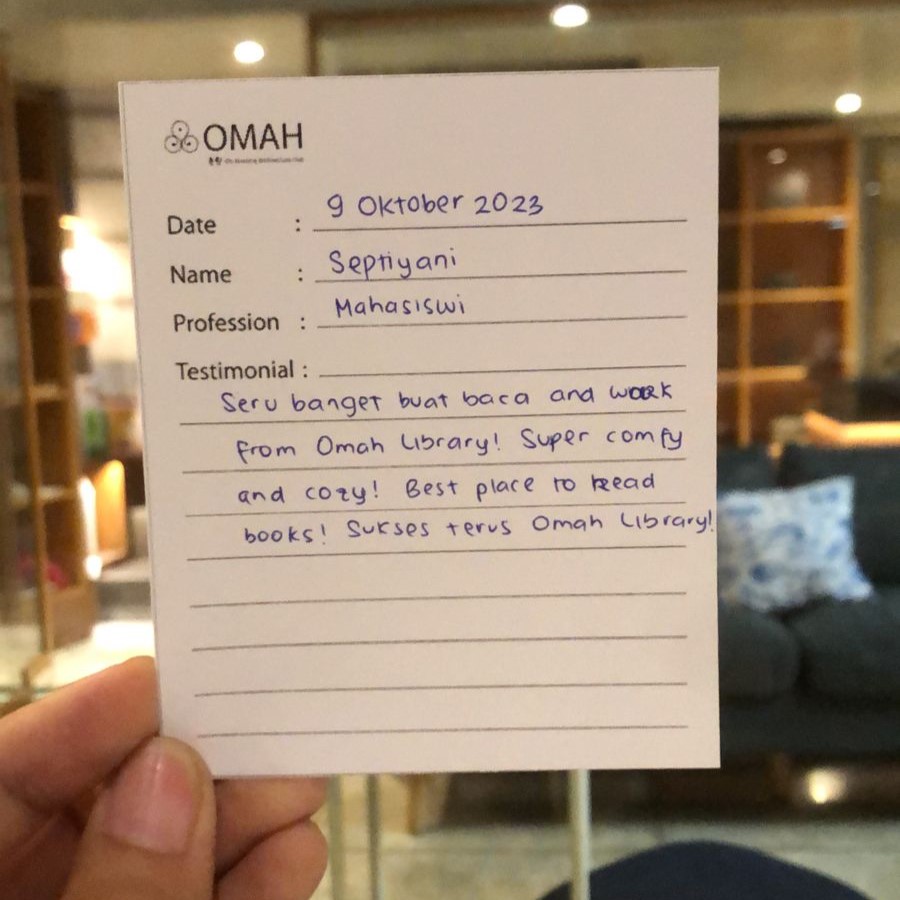 Seru banget buat baca and work from OMAH Library! Super comfy and cozy! Best place to read books! Sukses terus OMAH Library!