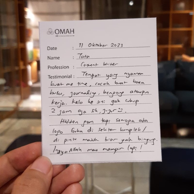 Tempat yang nyaman buat me time, cocok buat baca buku, journaling, bengong ataupun kerja. Kalo kesini gak cukup 2 jam aja sih, jujur:) Hidden gem tapi semoga ada logo Guha disekitar komplek/di pintu masuk biar gak bingung. InsyaAllah mau mampir lagi!