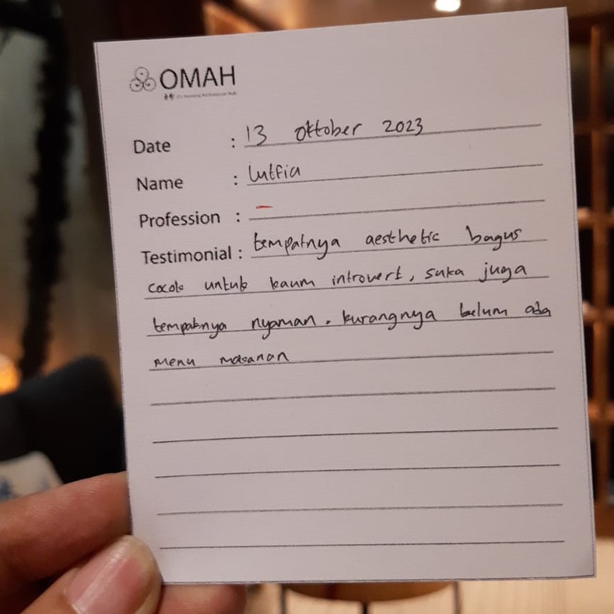 Tempatnya aesthetic, bagus, cocok untuk kaum introvert, suka juga tempatnya nyaman. Kurangnya belum ada menu makanan.