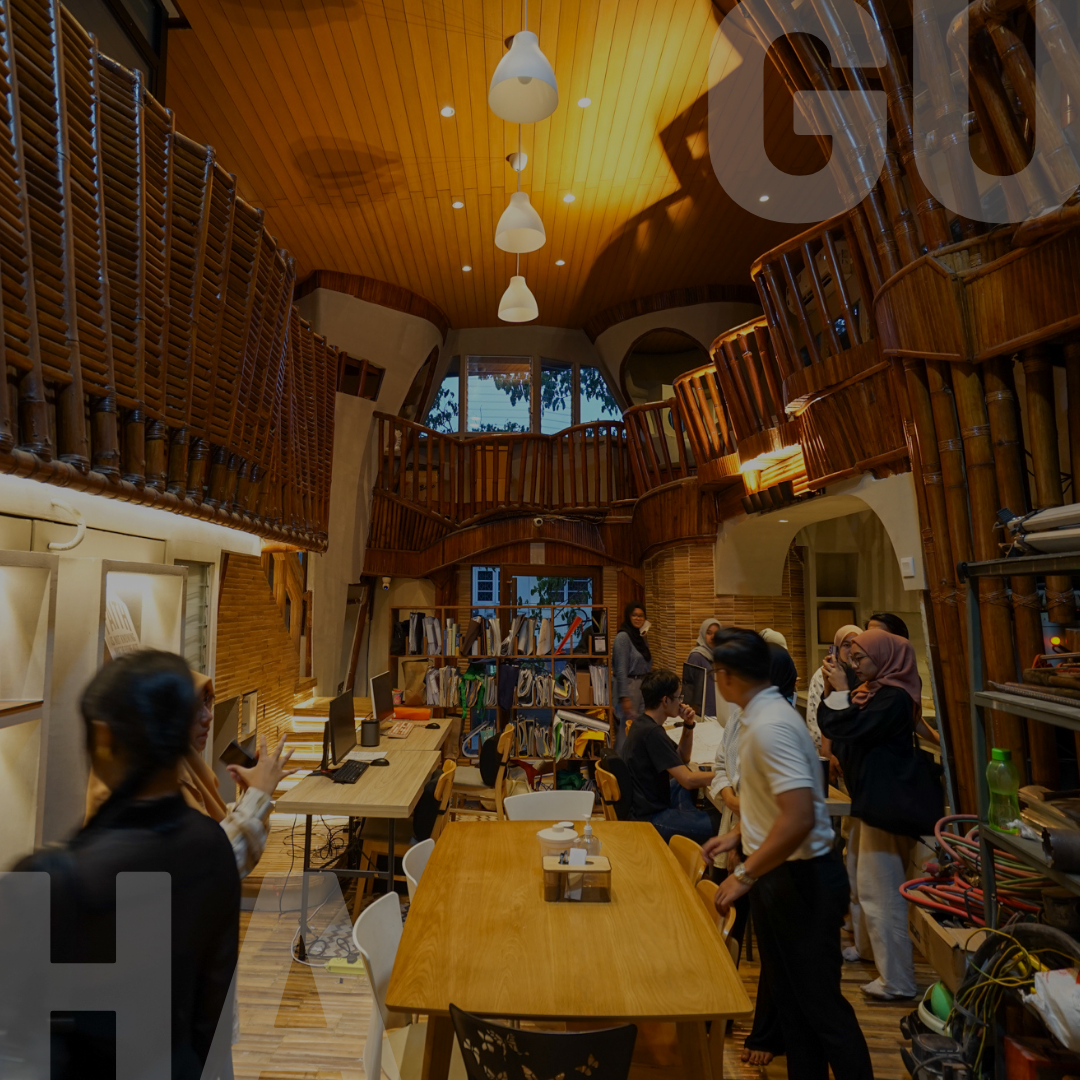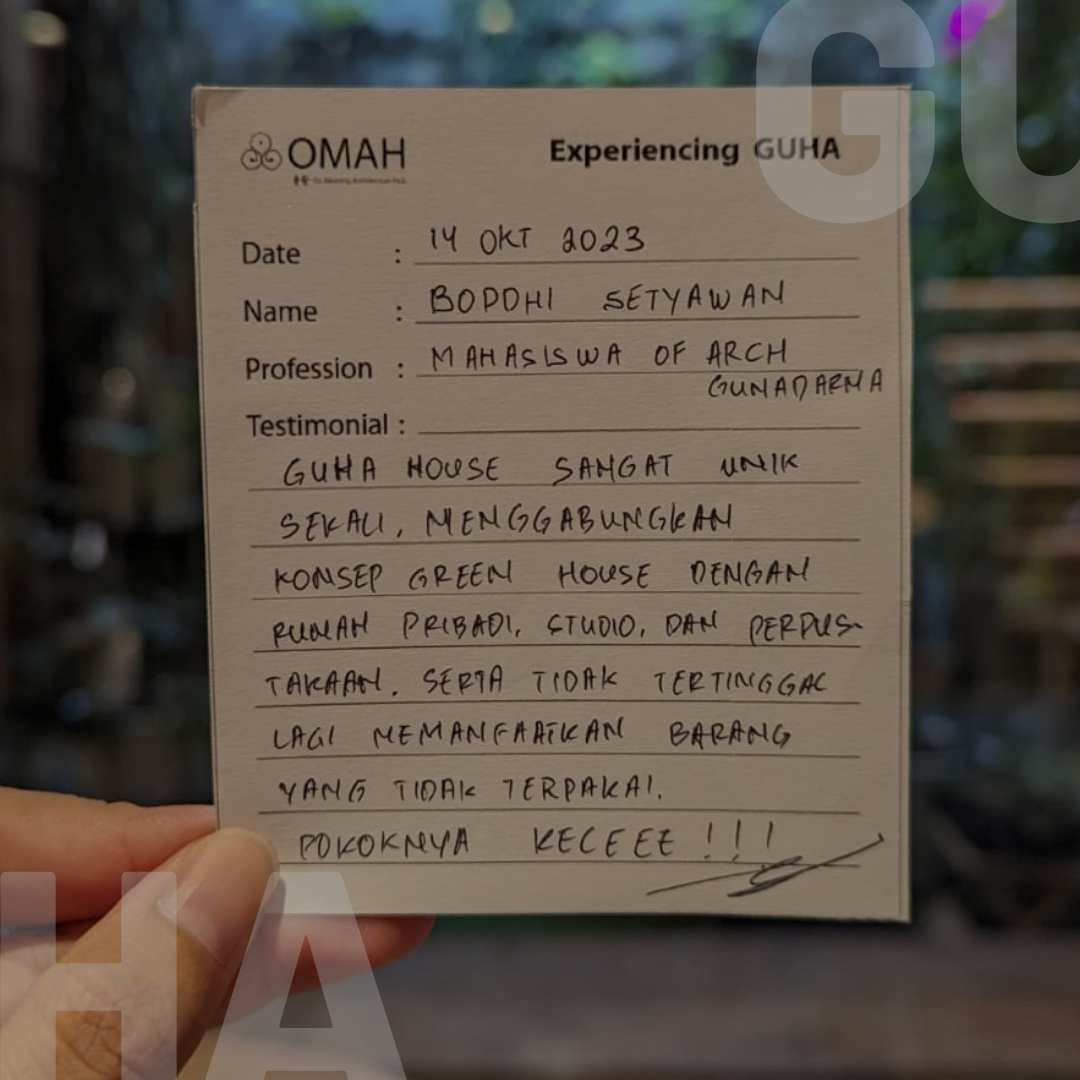 Guha house sangat unik sekali, menggabungkan konsep green house dengan rumah pribadi, studio dan perpustakaan serta tidak tertinggal lagi memangfaatkan barang yang tidak terpakai. pokoknya Kece!!!