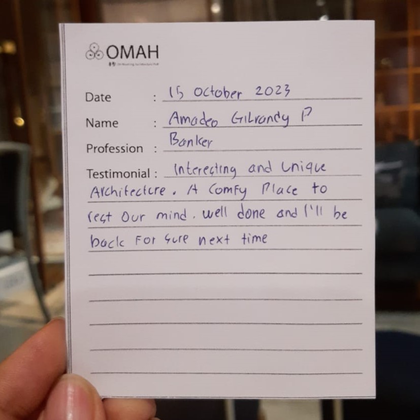 A very cozy place and unique concept combining library and cafe too. Lots of books collection inside about architecture and also interior. Definitely will come back here! ❤ Sukses terus OMAH Library & RAW architecture!