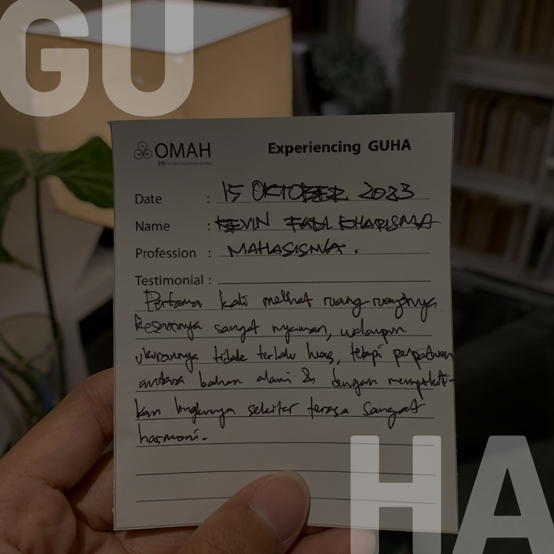 Pertama kali melihat ruangan-ruangannya kesannya sangat nyaman, walaupun ukurannya tidak terlalu luas, tetapi perpaduan antara bahan alami dan dengan memperlihatkan lingkungan sekitar terasa sangat harmonis.