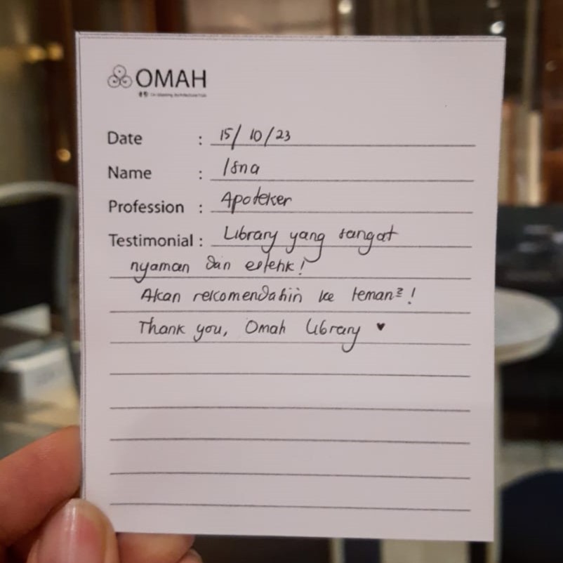 Library yang sangat nyaman dan estetik! Akan rekomendasiin ke teman-teman! Thank you, OMAH library ❤