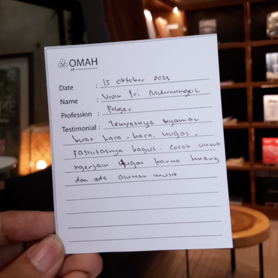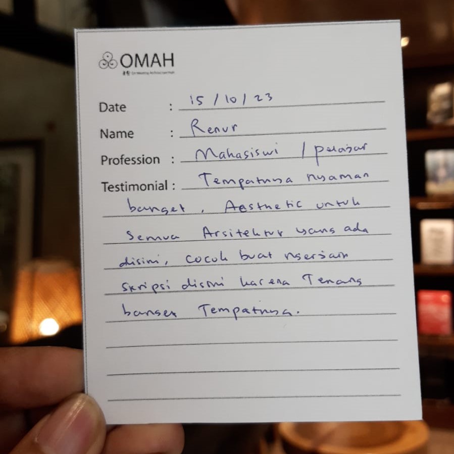 Tempatnya nyaman banget, aesthetic untuk semua arsitektur yang ada disini, cocok buat ngerjain skripsi disini karena tenang banget tempatnya.