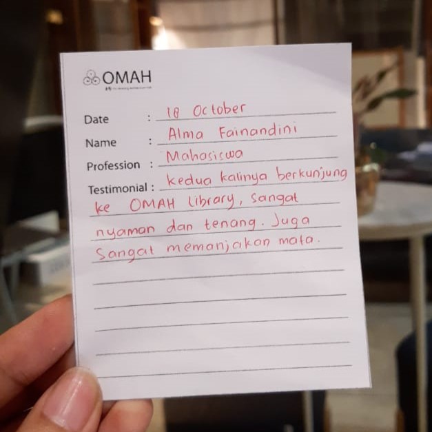 Kedua kalinya berkunjung ke OMAH library, sangat nyaman dan tenang. Juga sangat memanjakan mata.