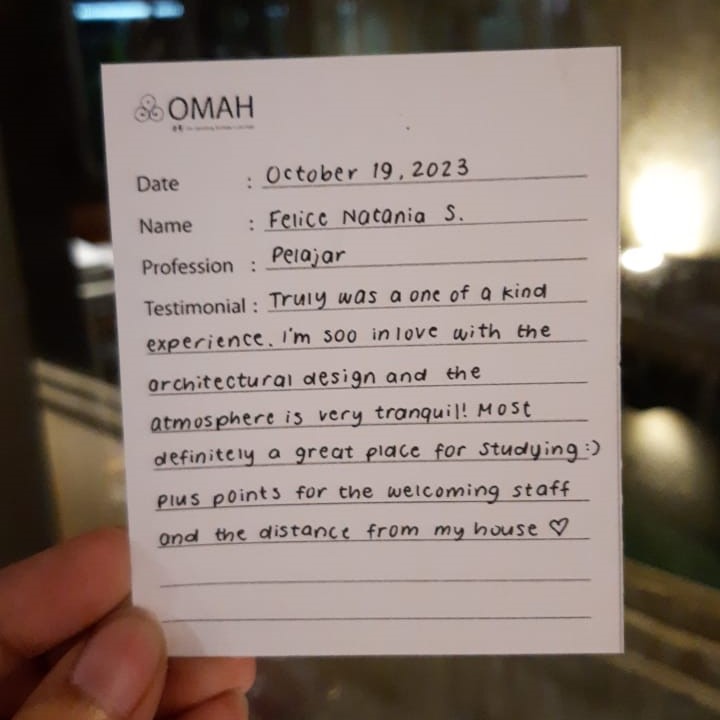 Truly was a one of a kind experience. I’m soo in love with the architectural design and the atmosphere is very tranquil! Most definitely a great place for studying:) Plus points for the welcoming staff and the distance from my house ❤