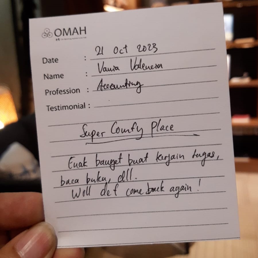 Super comfy place. Enak banget buat kerjain tugas, baca buku dll. Will definitely come back again!