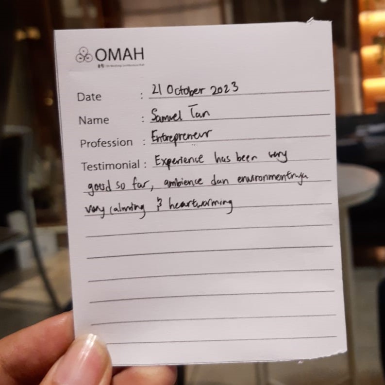 Experience has been very good so far, ambience dan enviroment-nya very calming & heartwarming.