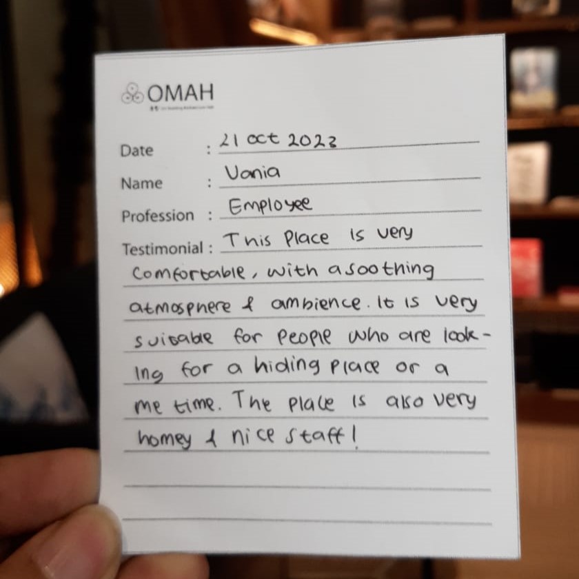 This place is very comfortable with a soothing atmosphere & ambience. It is very suitable for people who are looking for a hiding place or a me time. The place is also very homey & nice staff!