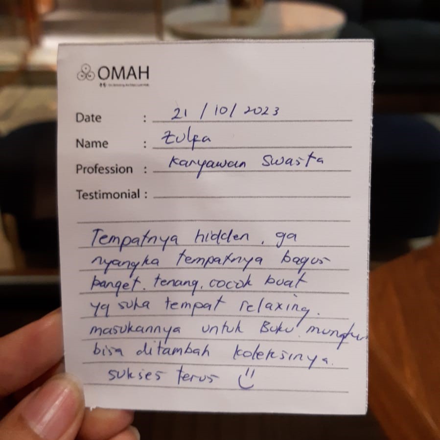 Tempatnya hidden, ga nyangka tempatnya bagus banget, tenang, cocok buat yang suka tempat relaxing. Masukannya untuk buku mungkin bisa ditambah koleksinya. Sukses terus:)