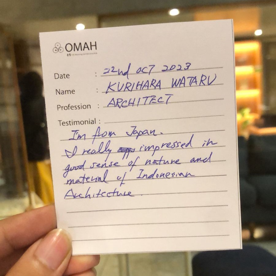 I’m from Japan. It really impressed in good sense of nature and material of Indonesian Architecture.