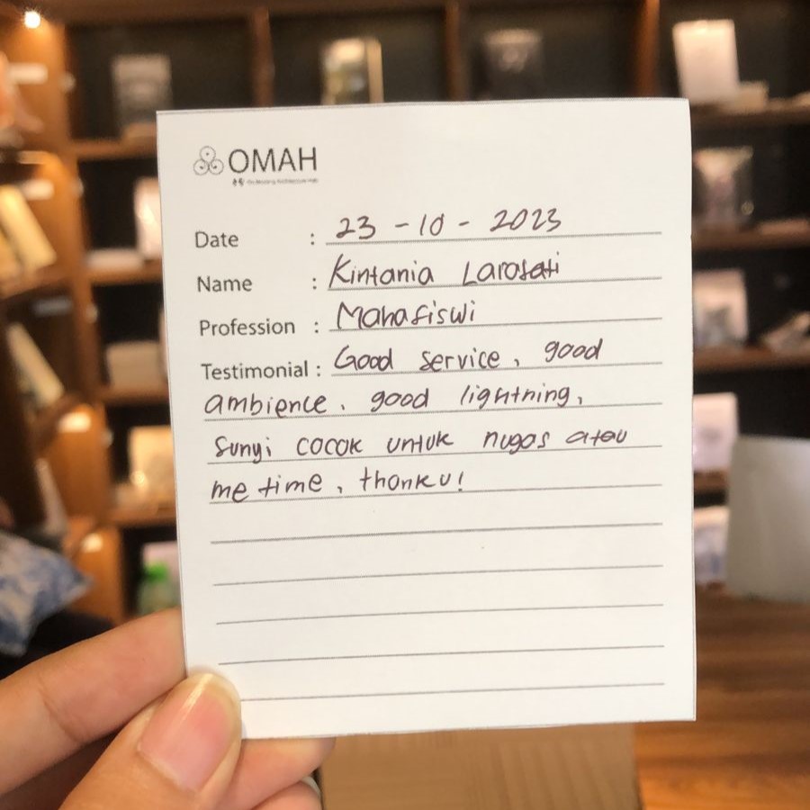 Love it! Bagus, comfy, seru buat ngobrol, hening juga hihi. Good job OMAH library & thank you.