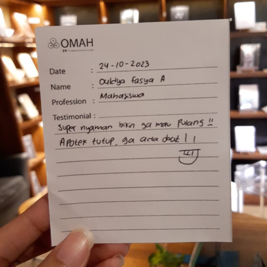Super nyaman bikin ga mau pulang. Apotek tutup, ga ada obat!!