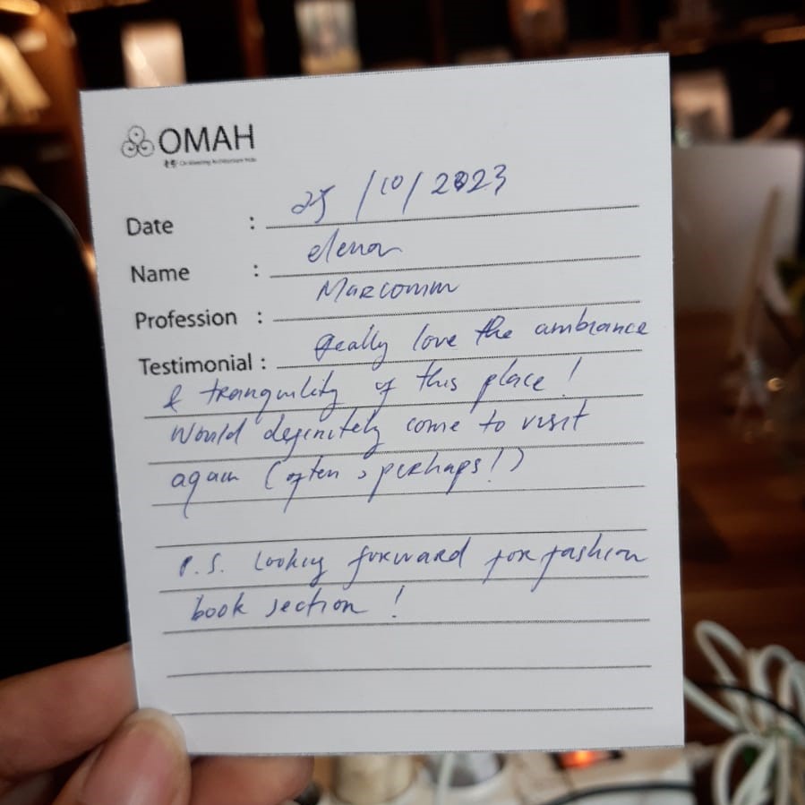 Really love thr ambience & tranquility of this place! Would definitely come ti visit again (often perhaps!) P.S looking forward for fashion book section!