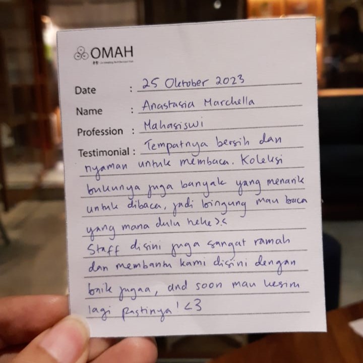 Tempatnya bersih dan nyaman untuk membaca. Koleksi bukunya juga banyak yang meanrik untuk dibaca, jadi bungung mau baca yang mana dulu hehe >< Staff disini juga sangat ramah dan membantu kami disini dengan baik juga and soon mau kesini lagi pastinya ❤
