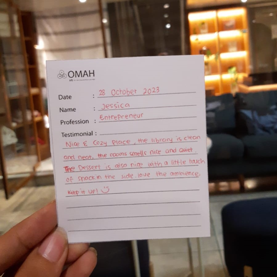 Nice & cozy place, the library is clean and neat, the rooms smalls nice and quiet. The dessert is also nice with a little touch of snack in the side. Love the ambience, keep it up! 🙂