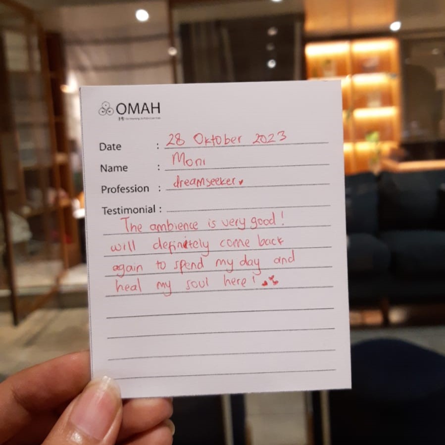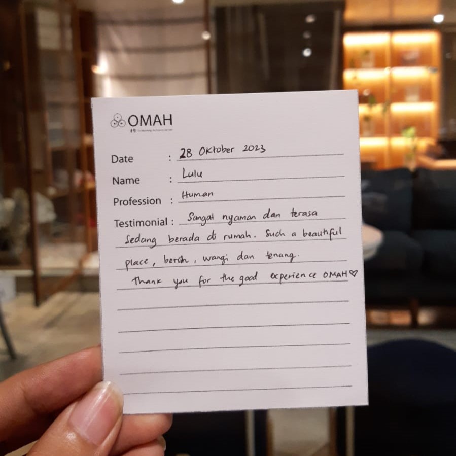 Sangat nyaman dan terasa sedang berada di rumah. Such a beautiful place, bersih, wangi dan tenang. Thank you for the good experience OMAH ❤