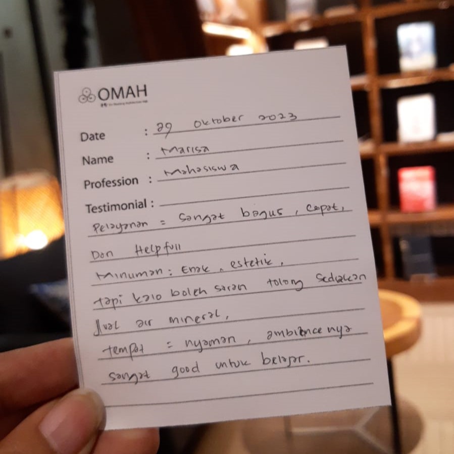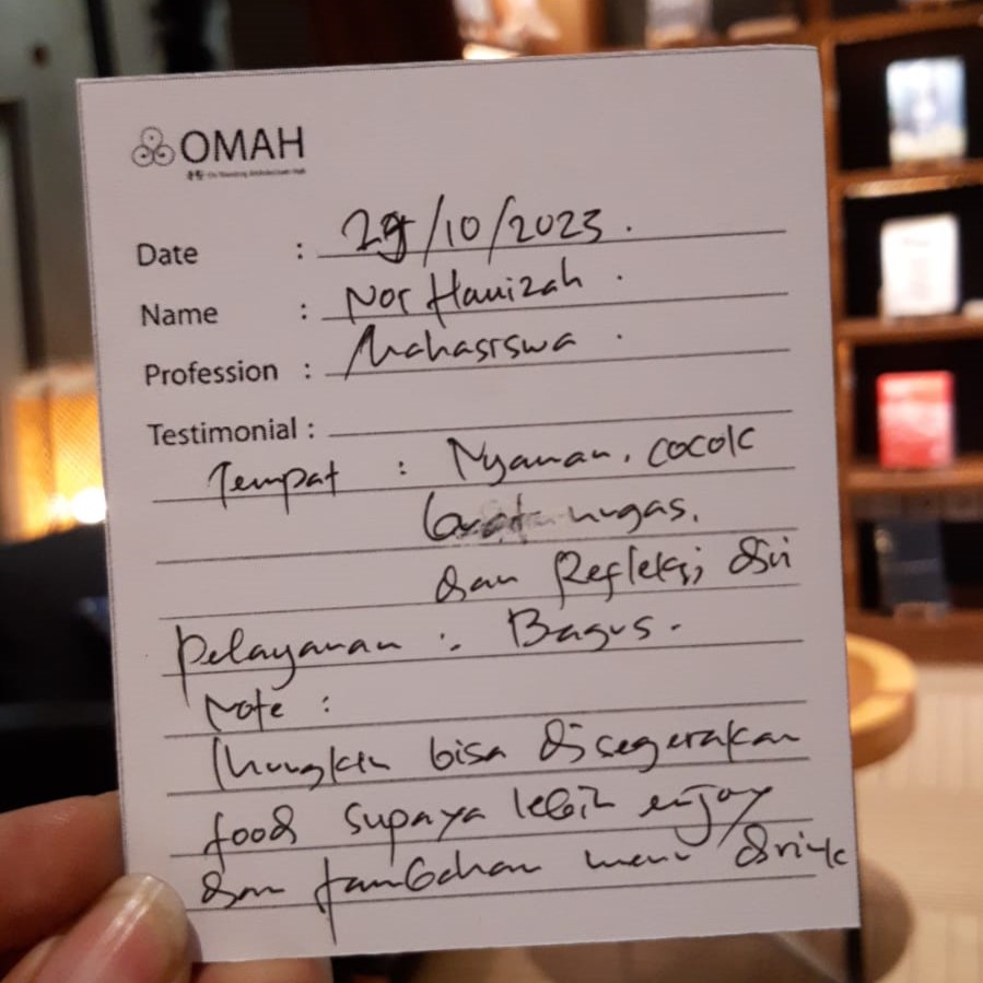 Tempat nyaman, cocok buat nugas dan refleksi diri. Pelayanan bagus. Note : mungkin bisa disegerakan food supaya lebih enjoy dan tambahan menu drink.