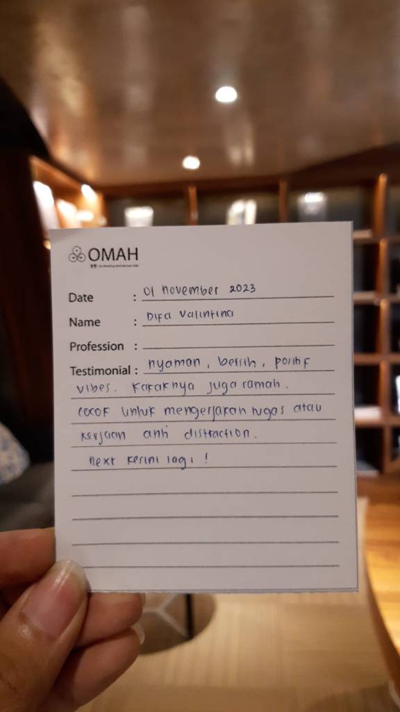 Nyaman, bersih, positif vibes. Kakaknya juga ramah. Cocok untu mengerjakan tugas atau kerjaan anti distraction. Next kesini lagi!