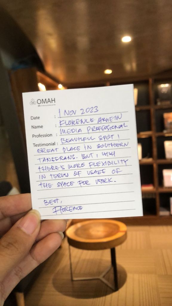 Beautiful spot! Great place in southern tangerang. but, i wish there’s more flexibility in terms of usage of the space for work.