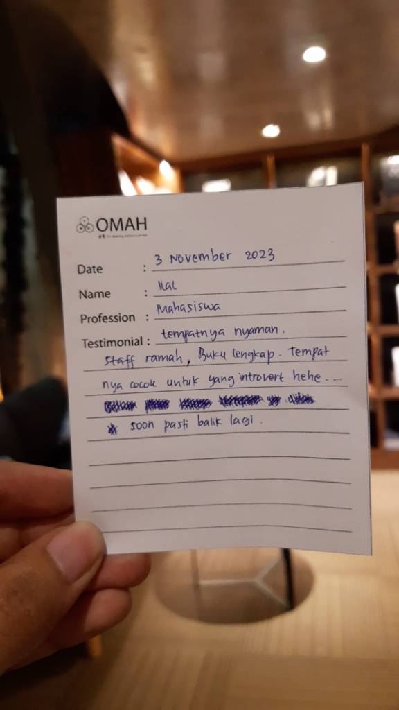 Tempat-nya nyaman, staff ramah, buku lengkap. Tempat-nya cocok untuk yang introvert hehe… Soon pasti balik lagi.