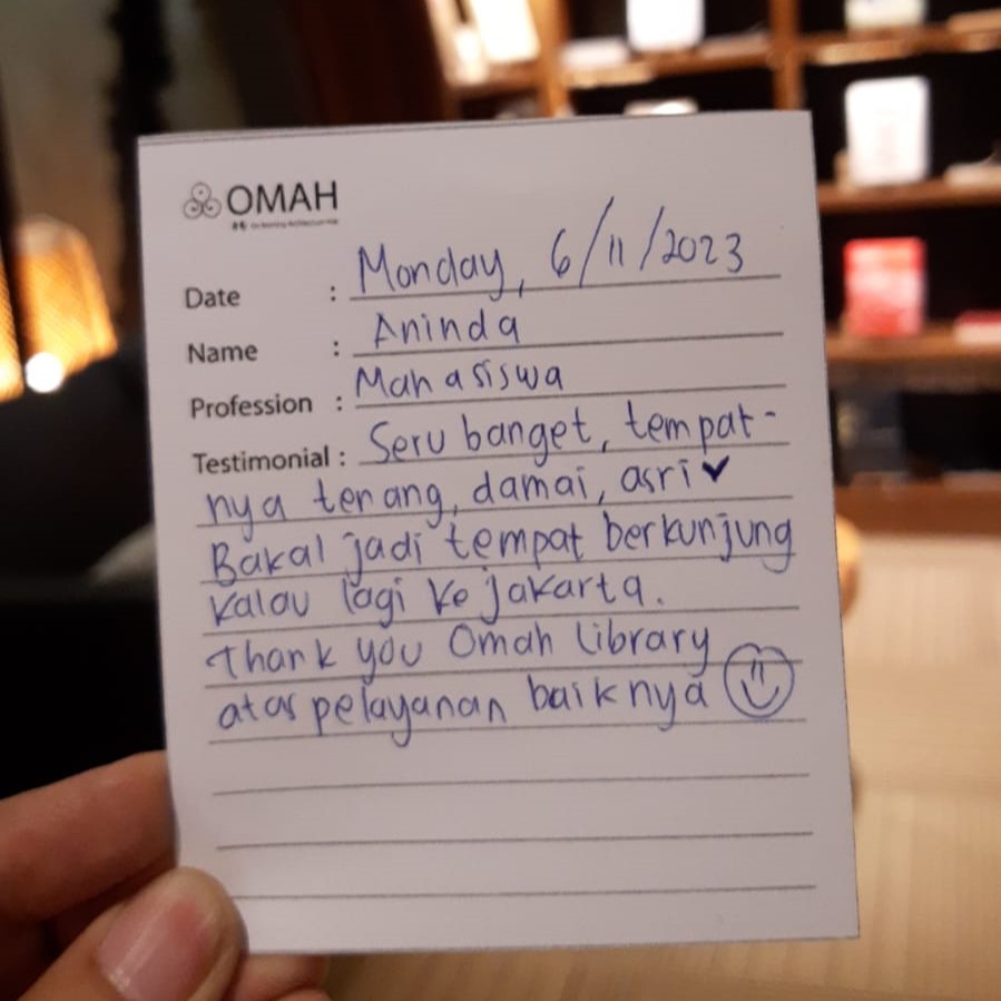 Seru banget, tempatnya terang, damai, asri ❤ bakal jadi tempat berkunjung kalau lagi ke Jakarta. Thank u OMAH library atas pelayanan baiknya.